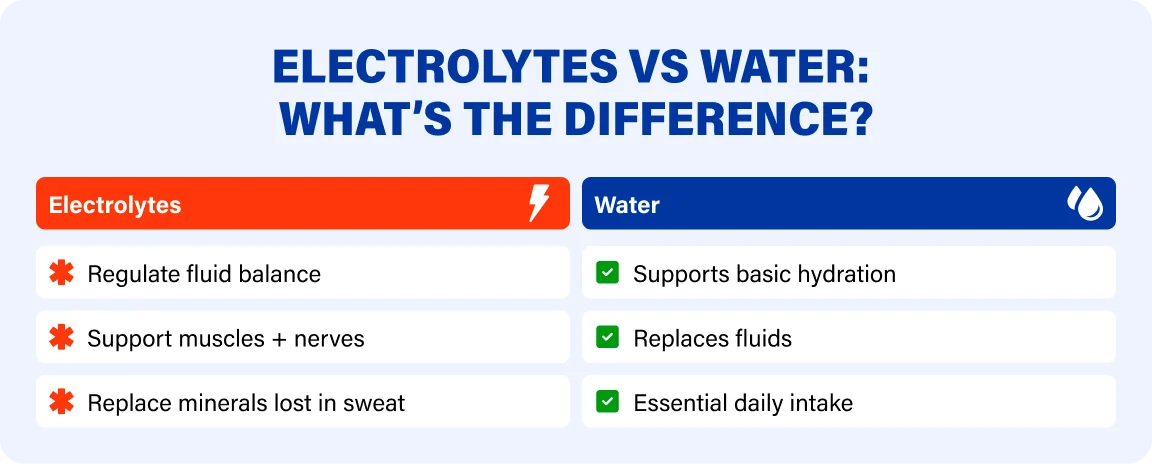 Water helps with hydration broadly, while electrolytes help the body regulate and use that hydration effectively. In many everyday situations, water may be enough. In other situations, especially those involving sweat loss or higher physical demand, electrolyte support may provide a better match for what the body is losing.